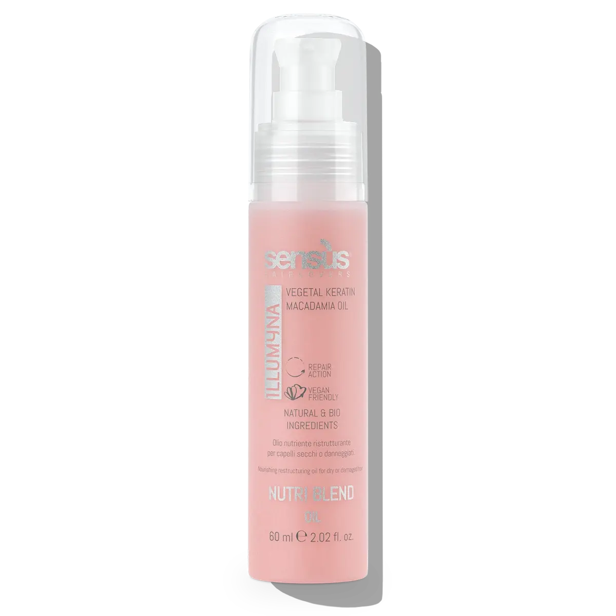 Odżywczy olejek odbudowujący wzbogacony olejkiem macadamia i roślinną keratyną. Daje natychmiastowy efekt odżywienia oraz rozświetlenia na włosach zmęczonych i wrażliwych, ponieważ głęboko je odżywia.